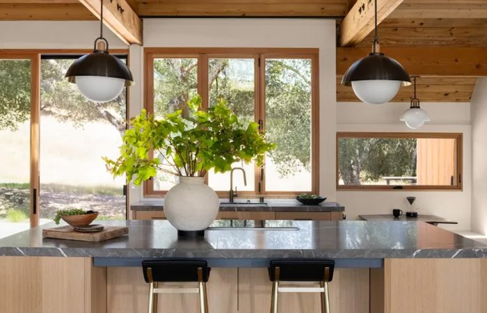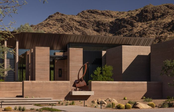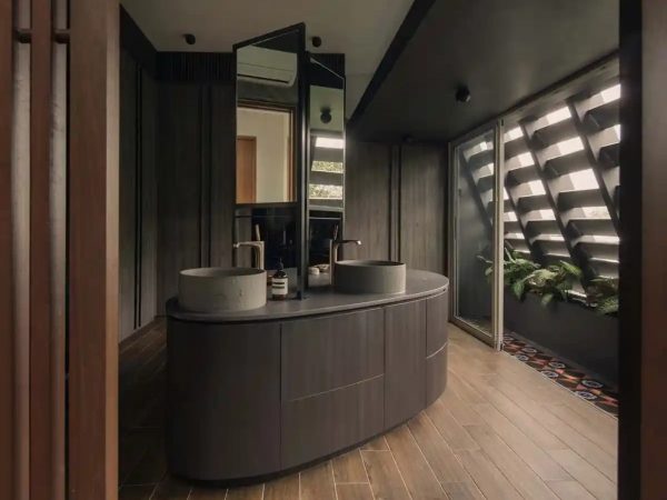 Cornerstone House, en Northcote (Melbourne), redefine el lujo desde la materia prima: una vivienda construida literalmente alrededor de 12 enormes rocas colocadas antes de levantar la estructura. El acero negro y la piedra en bruto componen una fachada con espíritu de cantera —audaz, escultórica y profundamente ligada a la historia del lugar— que continúa hacia el interior con un recorrido dramático de listones oscuros, una cocina de tonos intensos con acentos metálicos rosados y un estar que equilibra dureza industrial con textiles cálidos. Grandes puertas corredizas conectan el espacio abierto con una terraza, jardín paisajístico y piscina privada, logrando una experiencia continua entre arquitectura y naturaleza: una sinfonía de contrastes donde lo crudo y lo refinado conviven con intención.