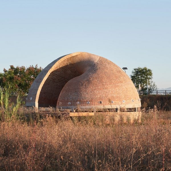 El estudio de arquitectura HCCH Studio ha creado un ladrillo con forma de concha pabellón En el condado de Longyou, Porcelanaque aprovecha su entorno agrícola.