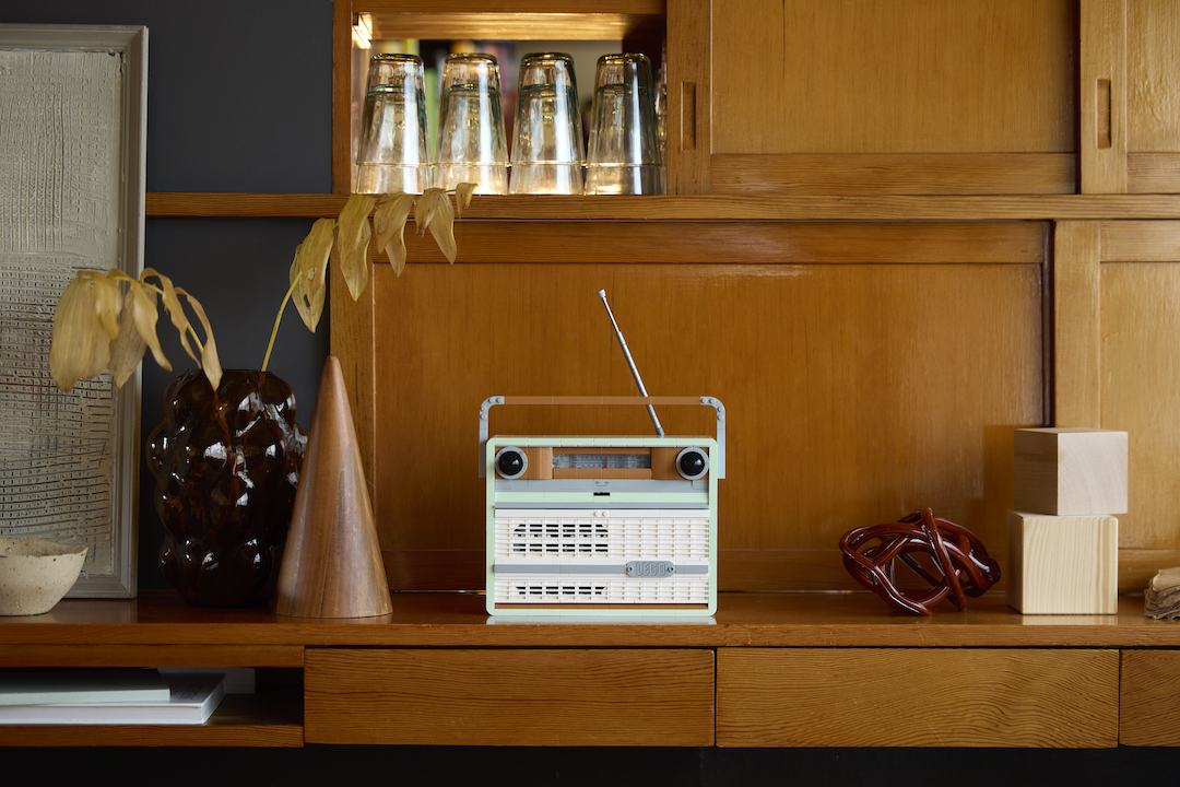 Lego Devolver llamada Viene con el último reloj configurado, Radio retro ilustrada LEGODiseñado para transportar a los constructores a la época dorada de la música en los años 1950 y 1960.