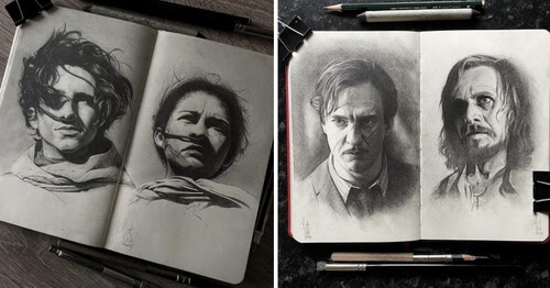 Una de mis pinturas favoritas es la de Timothée Chalamet y Zendaya en el set de Dune Part 2. Aun así, Oak logra mantener los detalles claros y legibles. El retrato de Chalamet ilustra esto mejor.