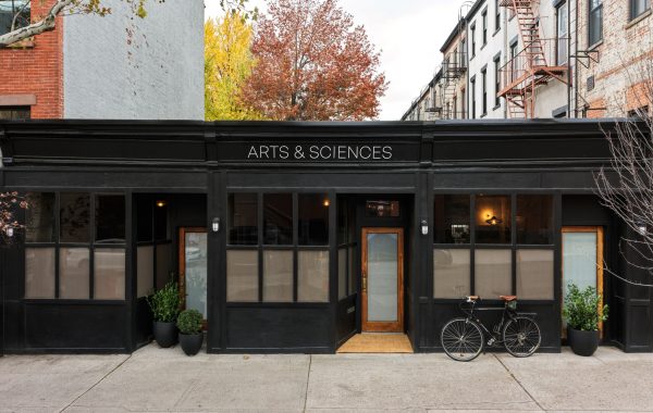 El restaurante se caracteriza por un interior “poco precioso” caracterizado por colores salmón, paredes de yeso visto y largas mesas comunes talladas en la isla a partir de un solo material. douglas Árbol.