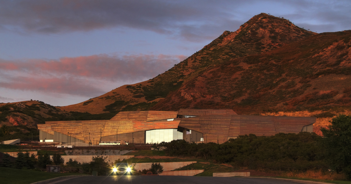 Inspirado en las sorprendentes formaciones de arenisca de los cercanos parques nacionales Bryce Canyon y Mount Zion, el principal atractivo arquitectónico del museo es su techo en forma de cañón que cubre todo el edificio, así como 6,000 pies cuadrados (560 metros cuadrados) adicionales de techo exterior. espacio de actividad espacio. El diseño difumina los límites entre el interior y el exterior, fomentando la reflexión, el compromiso y el intercambio de ideas. Un techo en voladizo de 120 pies (35 metros) hacia el oeste crea un espacio social exterior cubierto y protege el muro cortina de vidrio orientado al oeste de la luz solar directa y el resplandor.
