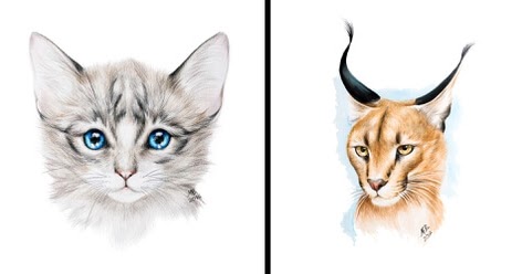 Pinta animales dulces en diferentes medios para resaltar sus mejores cualidades. lápices de colores dibujos y acuarela Las pinturas de abajo se marcan entre sí.