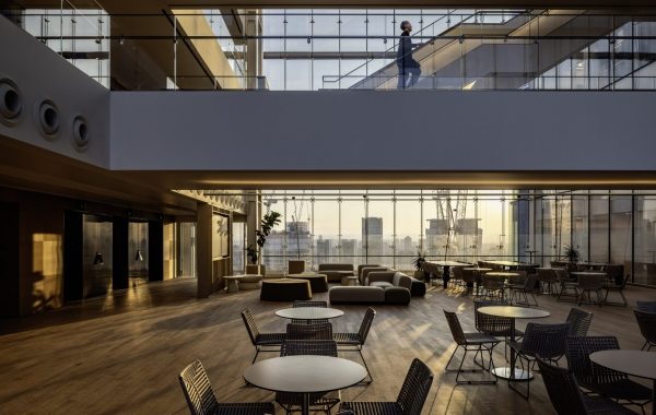 El estudio de diseño OMA y Potato Head trataron acústicamente el interior para suprimir frecuencias erróneas.