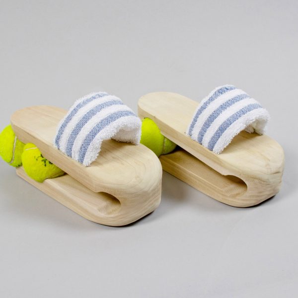 Los artículos desarrollados por los estudiantes incluyen un par de deslizadores de nogal de Odysseus Papamalis, hechos con pelotas de tenis encontradas en las canchas de los parques locales, y viejas toallas de gimnasio reutilizadas con correas hechas más tarde.