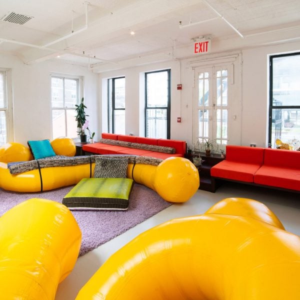durante este año diseño de nueva york Para las fiestas, el diseñador local Riley Hooker creó un modelo modular y retorcido. Inflable Un sistema de asientos compuesto por «mohos de limo» está diseñado para servir como lugar de reunión en tiempos de «crisis».