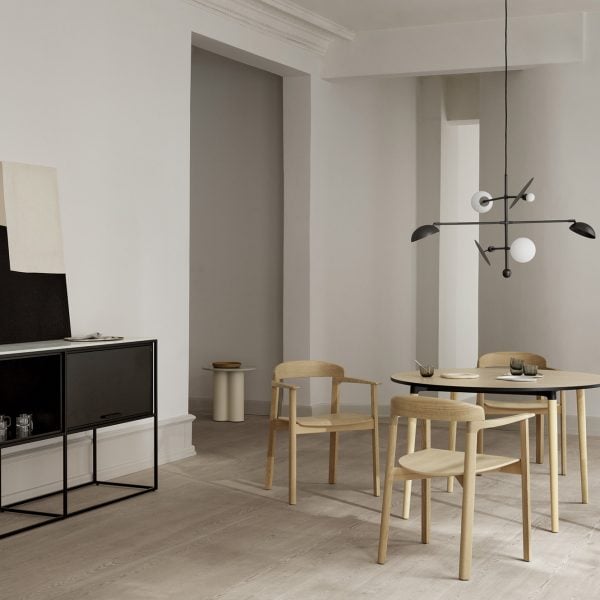 Su apariencia simple contradice la complejidad del diseño, que requirió varias iteraciones para lograr la armonía entre los reposabrazos y el respaldo.