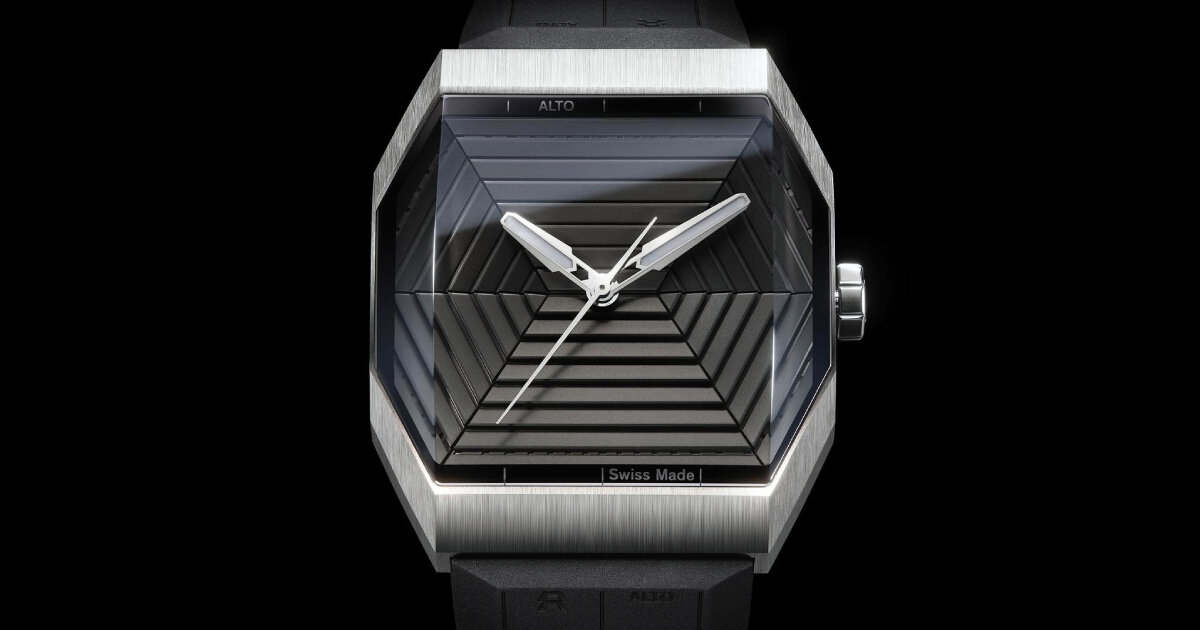 El diseñador Thibaud Guittad y su marca ALTO lanzan su colección básica mirar Modelo, ARTE 01. concepto de la década de 1970 auto Esto se ve enfatizado por los biseles angulares del reloj y la esfera anular en forma de pirámide. Forjado a partir de una sola pieza de titanio, el reloj está rematado con un cristal de zafiro, destacando el uso de dos materiales primarios. Cuando se ve desde un lado, el cristal de zafiro del ART 01 distorsiona la apariencia de la esfera, creando lo que parece ser una ilusión óptica. Esta tapa de cristal combina una superficie exterior curvada y facetada con una superficie interior semiesférica, una hazaña descrita por Thibaud Guittad como «Un logro sin precedentes en la relojería».