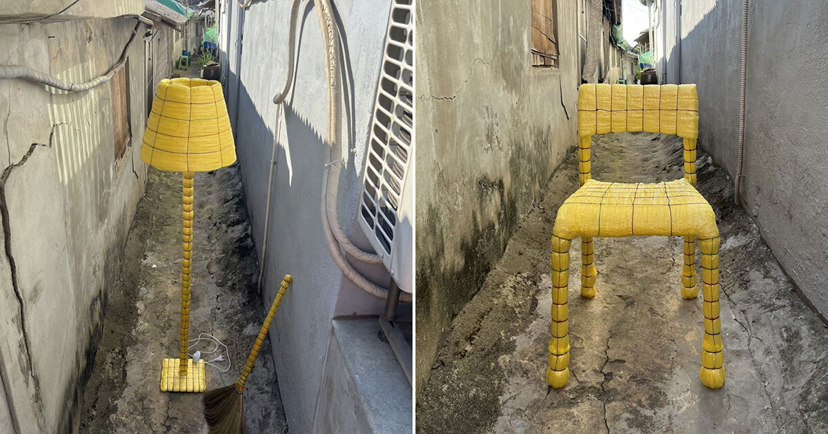 La colección de Do Hyun Ahn transforma las tradicionales escobas de caña coreanas en muebles tejidos de color amarillo