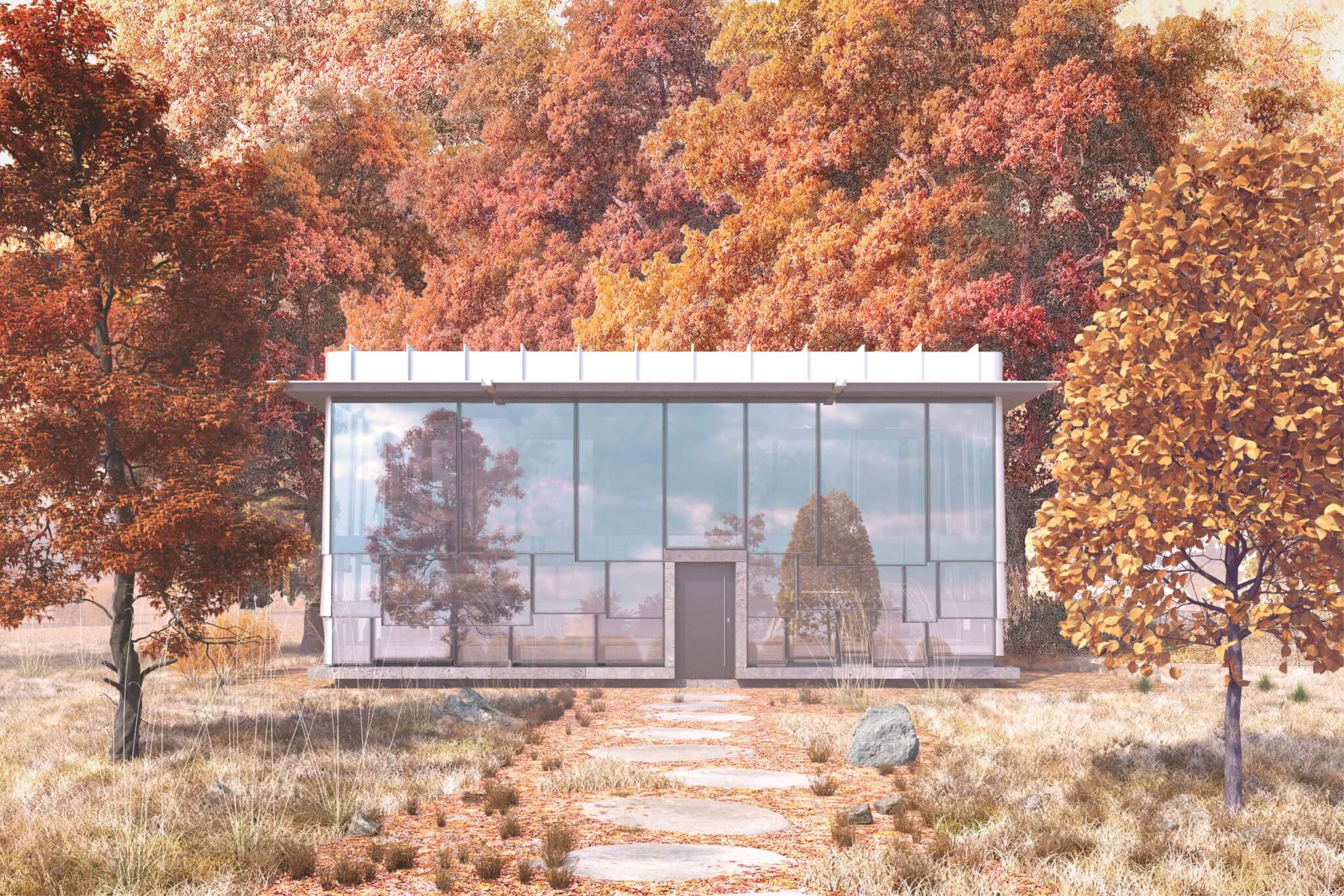 Representación detallada de una fachada de esquina hecha de vidrio aislante reciclado. (Reensamblaje de cortesía)