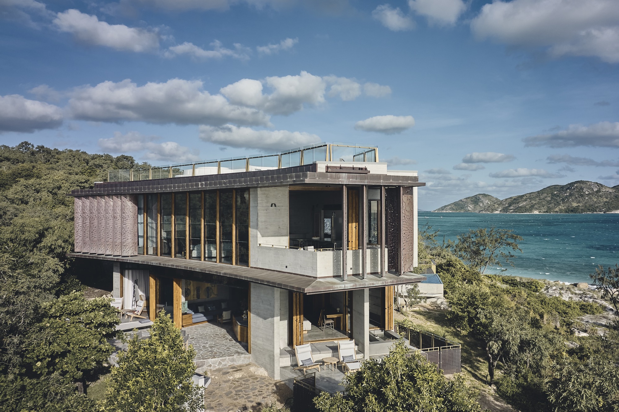 La casa presentaba en el pasado una imagen de «ruina», lo que motivó detalles de diseño como el uso de materiales de piedra y hormigón. Pero la sólida estructura de hormigón en forma de losa no es sólo estética, sino que también es muy funcional. El terreno dramático y accidentado es propenso a ciclones y condiciones climáticas adversas. Por lo tanto, la casa fue diseñada y construida para brindar refugio y protección cuando fuera necesario. Las aspas de cobre perforadas que recubren el exterior son visualmente hermosas y actúan como un escudo de escombros contra los vientos ciclónicos inherentes a este arrecife.