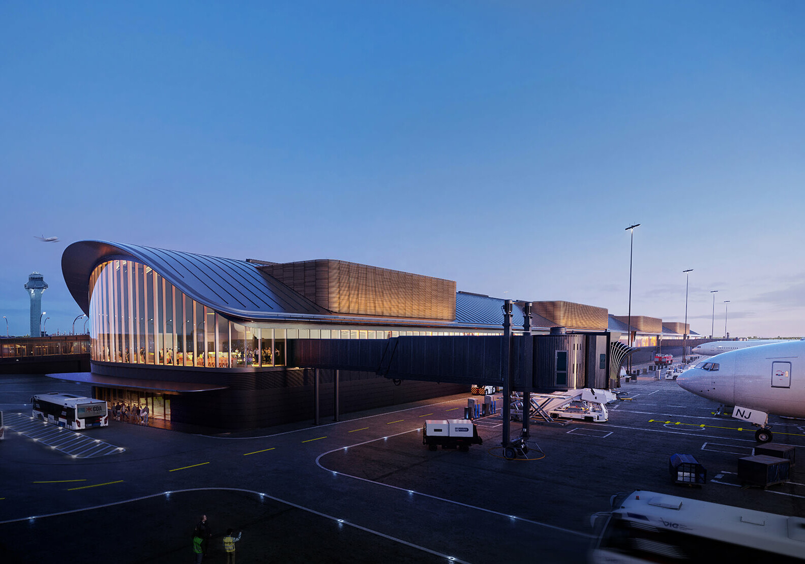 «Diseñamos la nueva terminal satélite para crear una experiencia sin fricciones para los pasajeros que compita con los mejores aeropuertos del mundo», dijo Scott Duncan, socio de diseño de SOM.