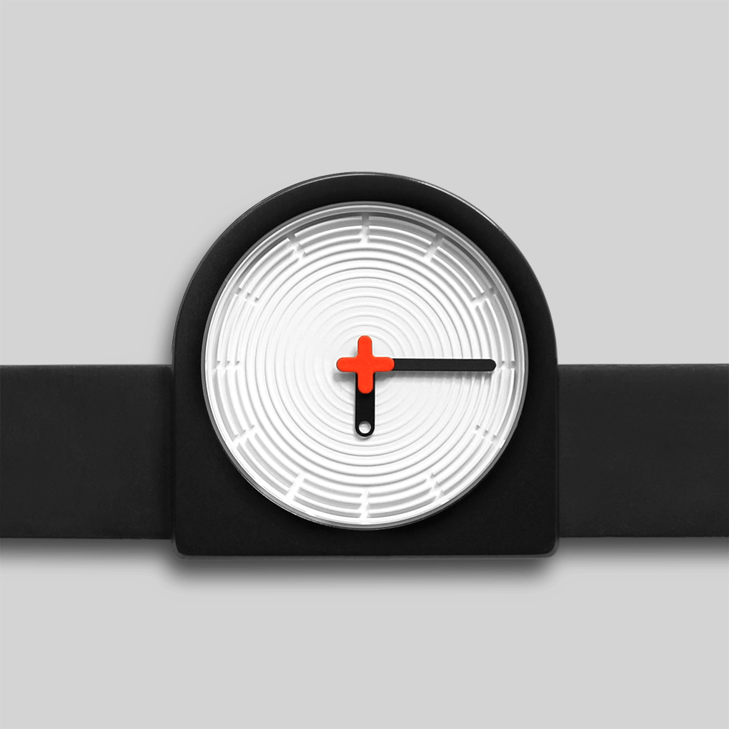 Con su esfera laberíntica, su segundero rojo marcado en el centro y su configuración de correa descentrada, sin duda despierta curiosidad con su expresión minimalista de horas, minutos y segundos.