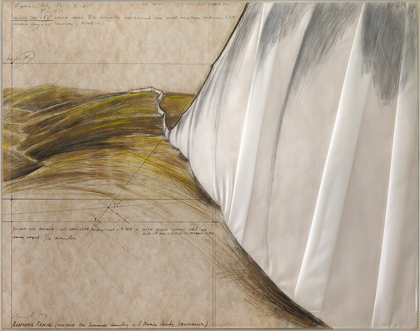 CHRISTO, Running Fences (Proyecto de los condados de Sonoma y Marin, California), 1974. 71 cm) | Imagen © Fundación Christo y Jeanne-Claude, foto: Annik Wetter, cortesía de Gagosian