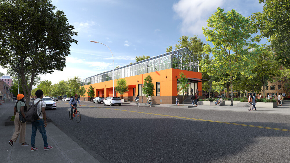 El diseño de Studio Gang aprovecha al máximo el frente a la calle del sitio, utilizando grandes ventanales a nivel del suelo y creando una generosa terraza comunitaria. El nivel inferior del edificio y gran parte de su interior estarán pintados de naranja. Se trata de crear una presencia central y accesible que invite a las personas a participar.