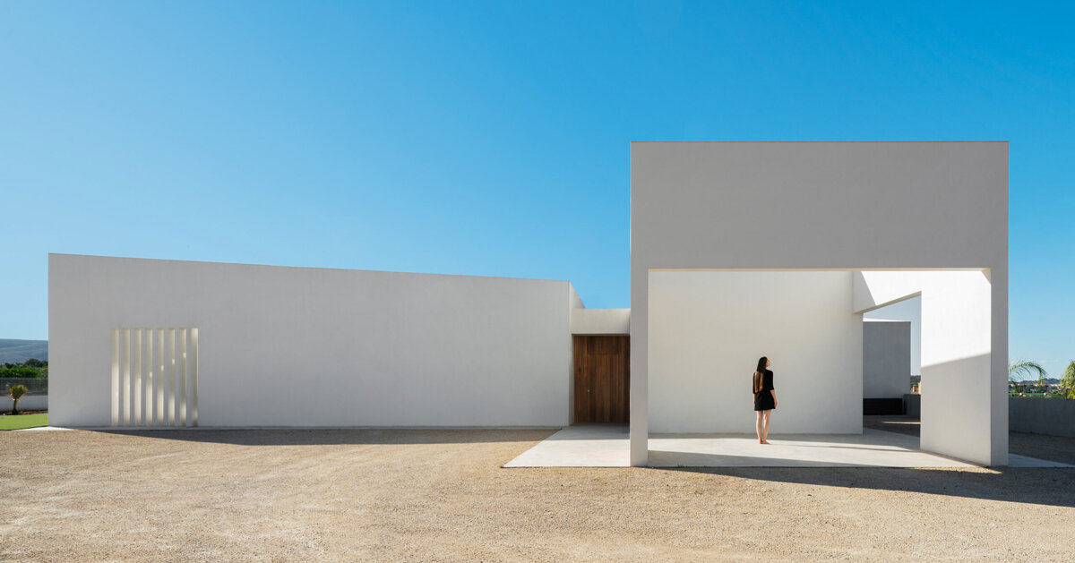 Wind House de Ruben Muedra Arquitectura está ubicada en las afueras de Canal City España, rodeado de olivares y cítricos. El diseño de la casa sigue una tipología tradicional, armonizando con su entorno adaptándose a una única planta. El diseño consta de cuatro prismas que delimitan y organizan eficazmente los espacios exteriores, cada uno dedicado a una función interior diferente. Los volúmenes están conectados entre sí a través de pasillos intersticiales, que se extienden en diferentes direcciones para formar una estructura en forma de cruz que conecta a la perfección los ámbitos exterior e interior.