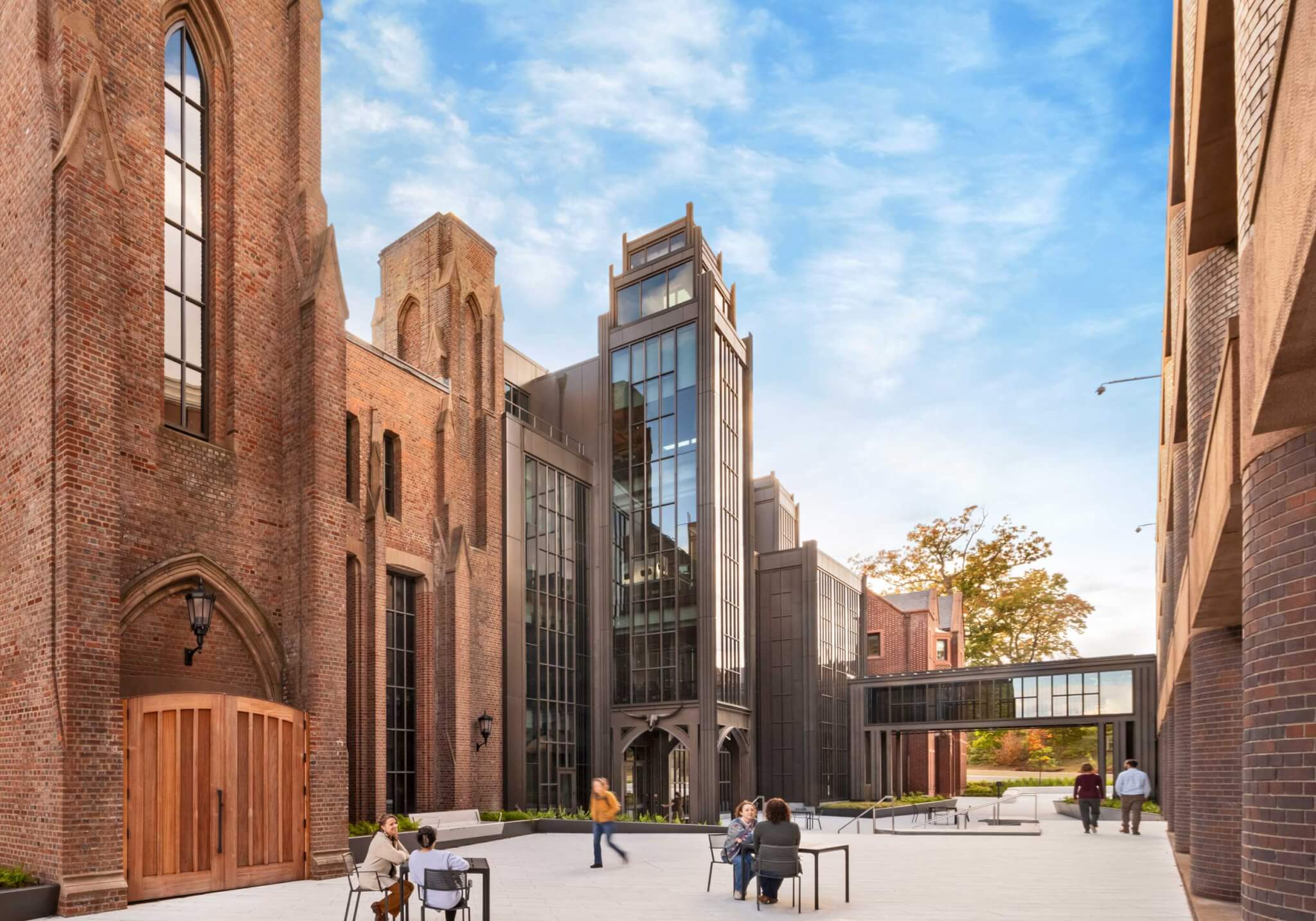 El espacio intersticial central entre los edificios se excavó hacia abajo para aumentar el espacio del sótano y proporcionar espacio de almacenamiento adicional. Luego se construyó una estructura de acero en el interior para llenar el «agujero». Era importante para todos los involucrados que la expansión todavía se sintiera como un Peabody, lo que significa que se apoyaba en los elementos góticos de su predecesor vecino pero con un toque contemporáneo. Esto se logra a través de arcos apuntados en la entrada, agujas decorativas cuadradas y acristalamientos con finos parteluces.