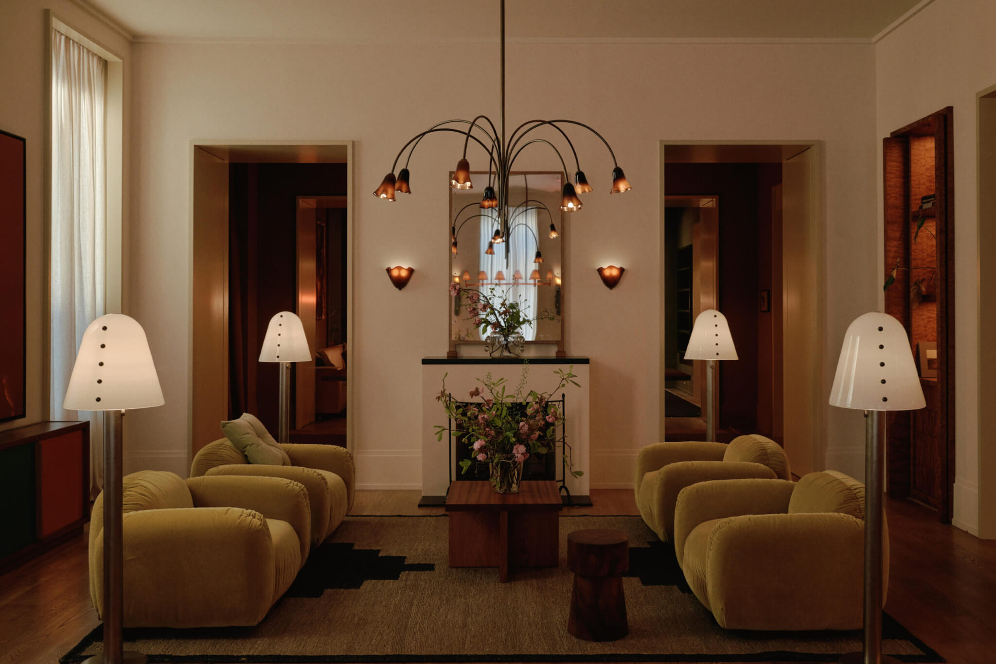 No importa el tiempo que haga, la iluminación siempre es perfecta dormitorioel nuevo concepto de barra diagonal de galería comercio y barra terreno común. Para una marca que hasta hace poco se centraba en el diseño de iluminación, tiene sentido que un loft de Tribeca sea siempre el escenario. La firma con sede en Brooklyn, fundada por Felicia Hung y Nick Ozemba, no solo diseñó un nuevo centro creativo sino que también amplió su oferta de productos con nuevas y primeras líneas de productos de muebles, azulejos y herrajes.