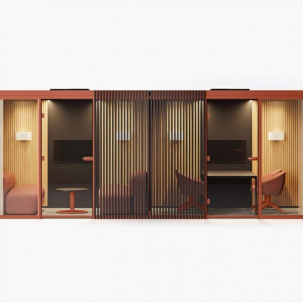 Sala de exposición Dezeen: Colección versátil vaina Diseñado para mejorar la productividad y el bienestar lugar de trabajo Es uno de los seis nuevos productos que se exhiben en la sala de exposición de Dezeen.