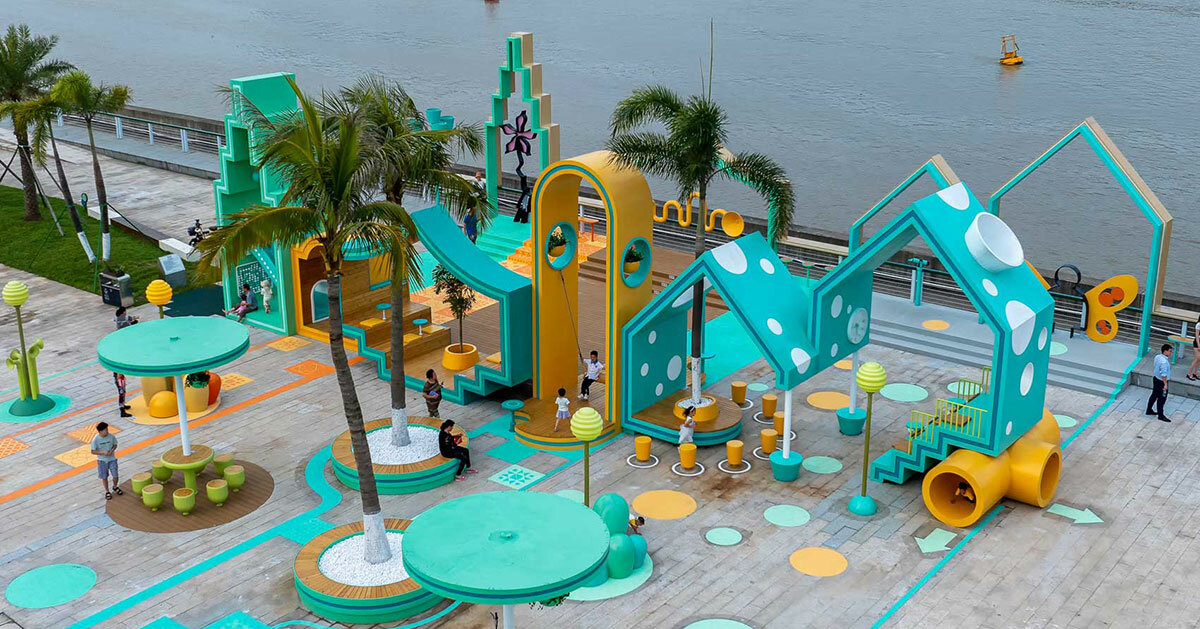 Coloridas cápsulas diseñadas por 100architects convierten terrenos baldíos en la isla Hengqin en interesantes espacios públicos
