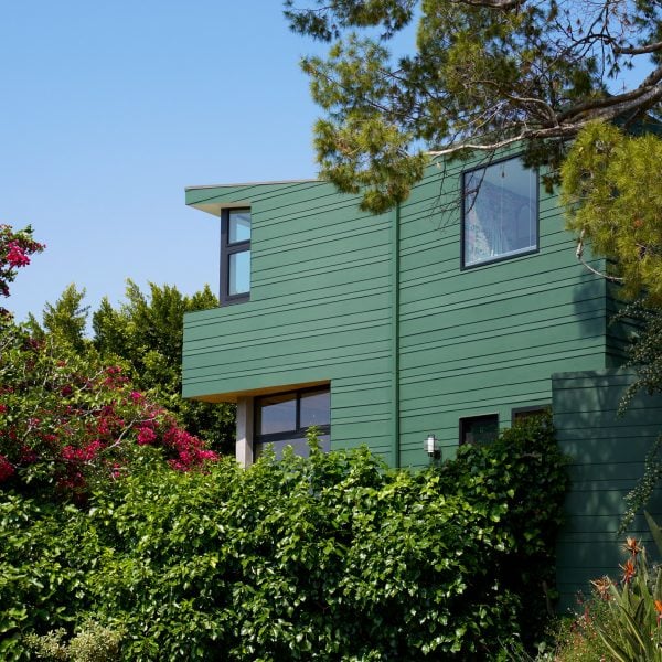 verde fibrocemento Un revestimiento que se mimetiza con los árboles es una de las modificaciones realizadas en el edificio centenario casa californiana Ha sido transformado por un estudio local. Martín Fenlon Arquitectos.
