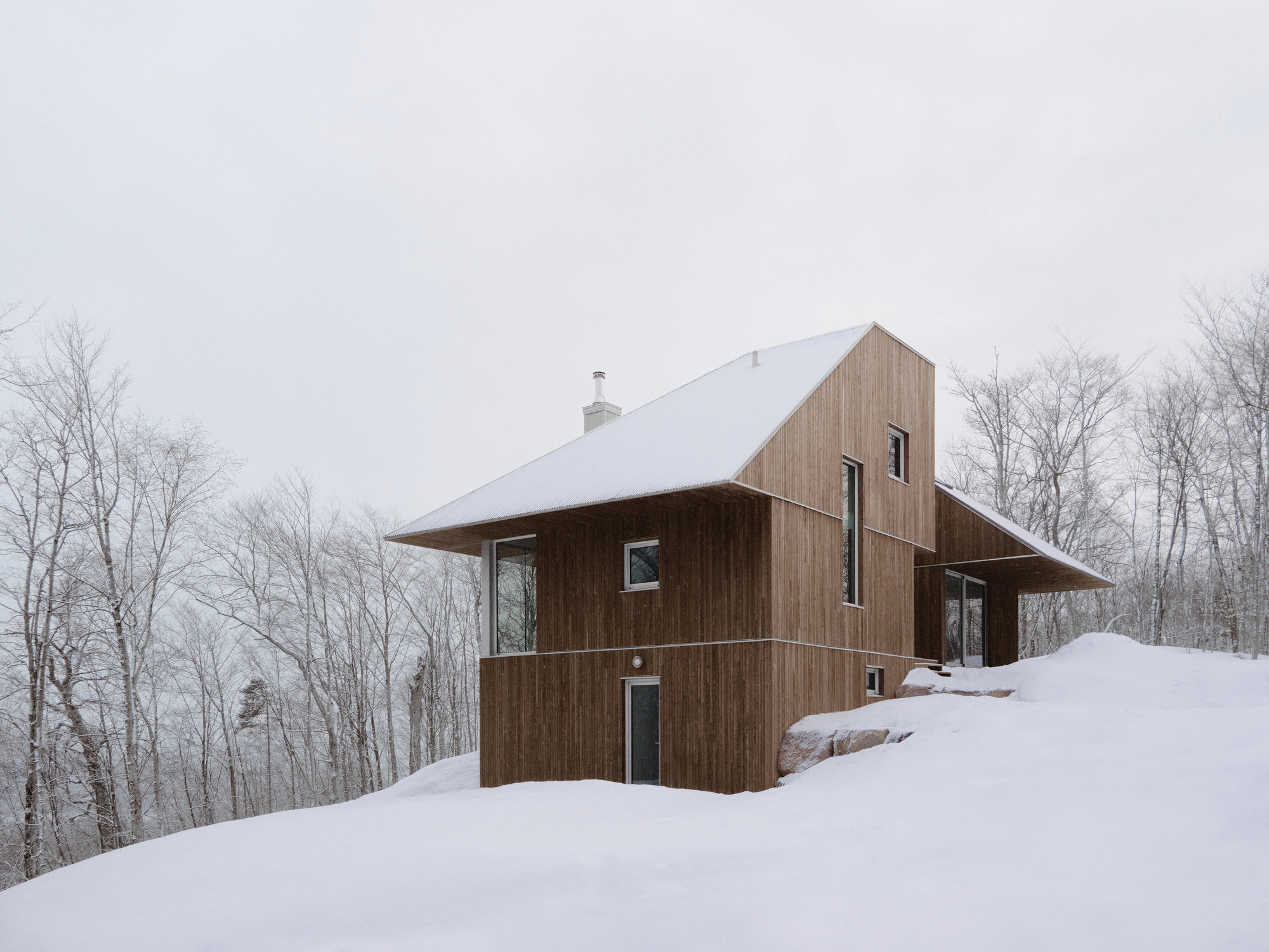 Descripción textual proporcionada por el arquitecto. El terreno proporcionado por el cliente, ubicado en las montañas boscosas de las Montañas Laurentinas en Quebec, enfrentó grandes desafíos desde el principio. Una vez que se tienen en cuenta los contratiempos de zonificación, las consideraciones ambientales y la privacidad mínima de la carretera, sólo queda una pequeña porción de la huella edificable. El resultado es un terreno definido por una pendiente cercana al 45%.