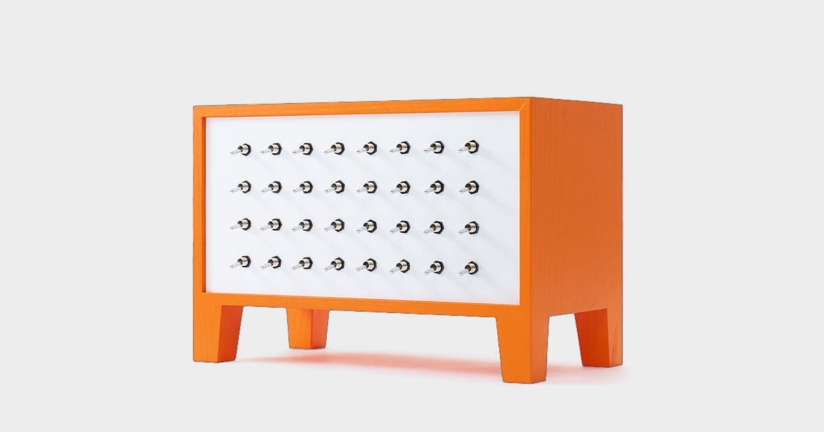 artista sonoro Suzuki Yuri Cooperó con Cornelius (Keigo Oyamada) para crear The Ambient Machine, versión Cornelius para la marca de muebles japonesa E&Y. El proyecto tiene como objetivo enriquecer el ambiente del hogar a través de música ambiental personalizable. Diseño original de Suzuki. El sonido se ve realzado por ocho fuentes de sonido diferentes aportadas por Cornelius. Juntos ofrecen a los usuarios una manera de reemplazar el ruido cotidiano con música ambiental relajante, brindando experiencias auditivas innovadoras que van desde ondas sinusoidales hasta sonidos electrónicos. El vibrante color naranja de esta versión simboliza su doble naturaleza como dispositivo y herramienta. instrumento musical.
