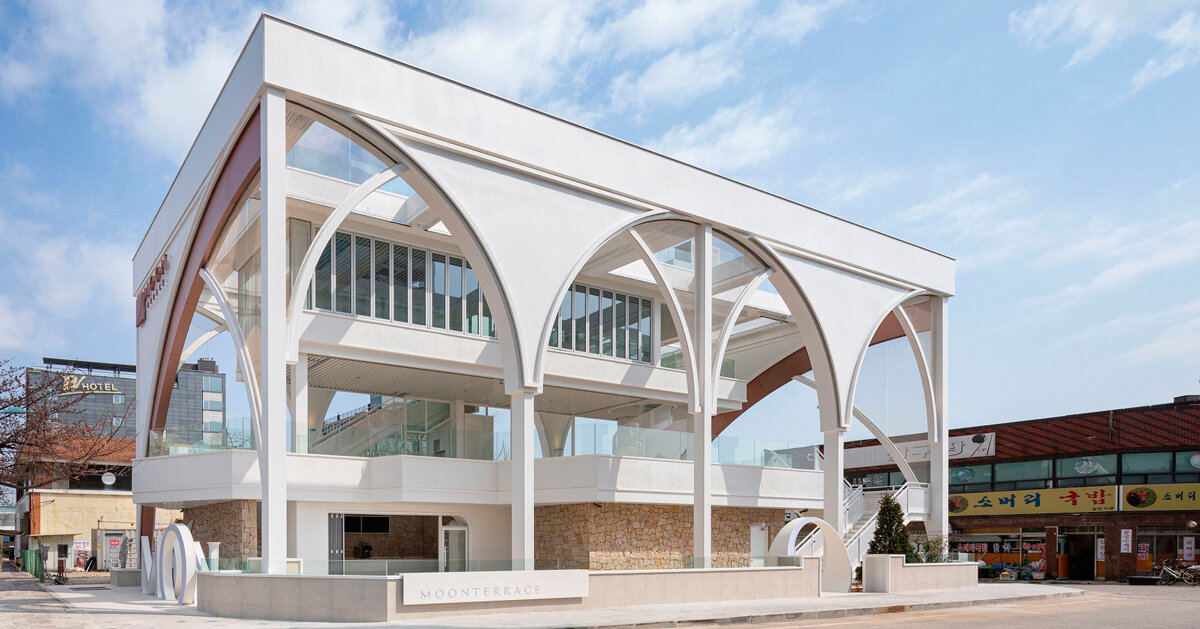 Se forma una piel metálica arqueada exterior alrededor de la terraza lunar realizada por arquitectos arcline en Corea del Sur