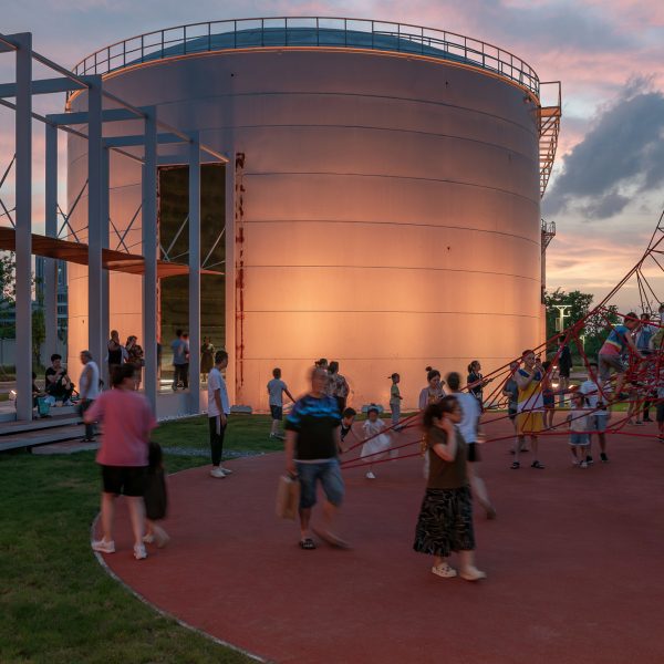 estudio chino arquitectura de destino Renovada una serie de antiguas petroleras. silo Changzhou entró en el jardín de algodón, Uso mixto Espacio comunitario rodeado de público. jardín y zona de juegos.