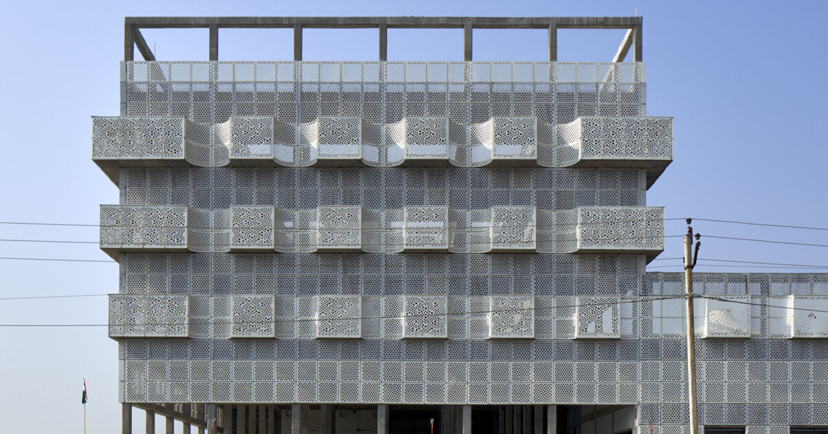 El diseño del edificio está inspirado en los havelis tradicionales, que cuentan con un patio central rodeado de claustros y espacios de circulación exterior sombreados. La fachada presenta pantallas Jali con diseños intrincados que brindan ventilación al tiempo que conectan el interior y el exterior. Los pequeños nichos en voladizo en la fachada (llamados «gokhra») actúan como captadores de viento y desempeñan un papel clave en la estrategia de enfriamiento pasivo del edificio, al mismo tiempo que sirven como nichos lúdicos para la lectura, las reuniones y la relajación. Una plataforma de acero curva envuelve el patio y sirve como plataforma de observación, permitiendo a los visitantes observar las actividades, el muro de escalada y las áreas de actuación que se encuentran debajo. La estructura está plantada con árboles y plantas nativas en múltiples niveles, lo que ayuda a orientarse y lleva la naturaleza al corazón del centro.