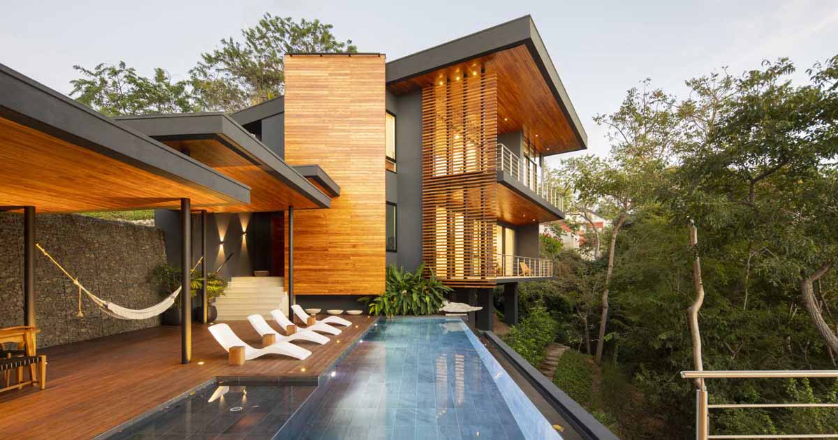Esta casa moderna abraza el terreno escarpado de la selva costarricense.