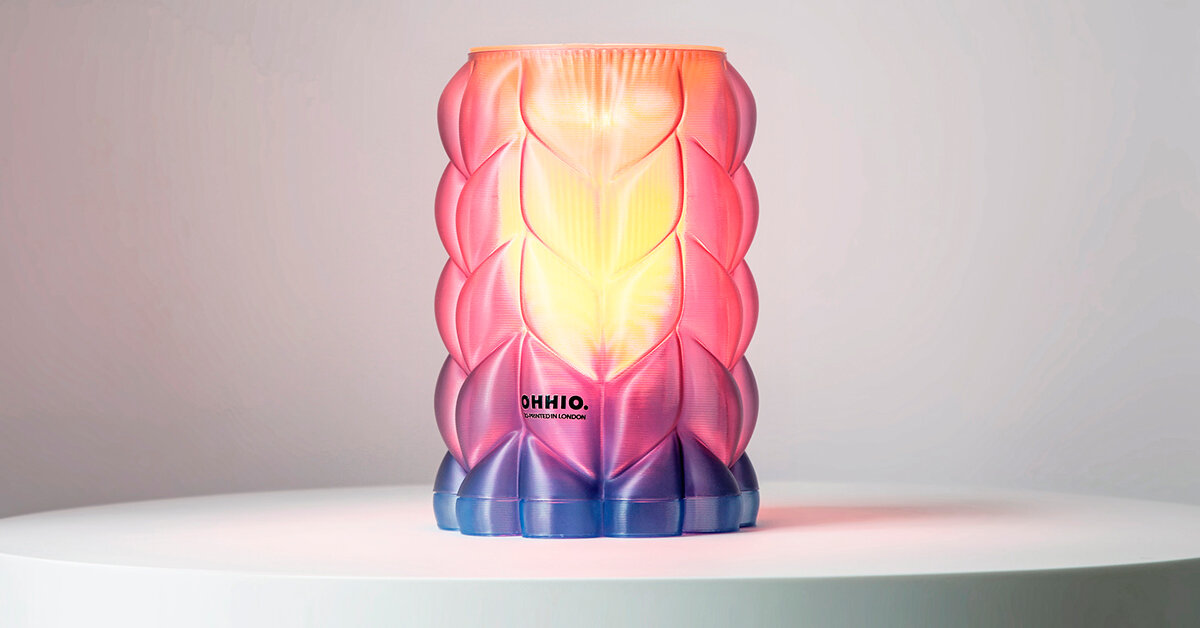 Ohhio, la marca conocida por sus prendas de punto súper gruesas fundada por la diseñadora ucraniana Anna Marinenko, acaba de lanzar una nueva categoría de productos: la impresión 3D. lámpara. El primer diseño se llama «Lámpara de punto súper grueso». Su forma reproduce el punto gigante de Ohio, lo que le da una sensación acogedora. La lámpara utiliza tecnología de impresión 3D sostenible. reciclado y la nueva tienda de bioplásticos en Ohio Londres.