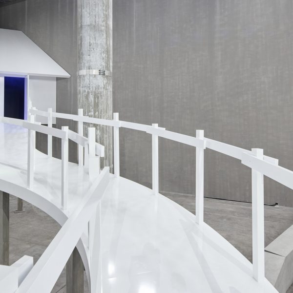 Ubicado en el espacio Deposito Fundación Prada diseñada por OMA Gallery, el escenario está compuesto por muros de hormigón de 10 metros de altura.