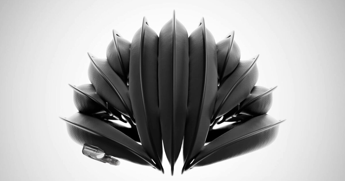 La startup Ventete lanza un dispositivo bicicleta Los pasajeros pueden apreciar: aH-1 también conocido como an Inflablemicro plegable casco Se infla y desinfla en unos 30 segundos. Una vez desinflado, también se pliega hasta alcanzar un tamaño más pequeño que el de una computadora portátil y probablemente sea tan delgado como una computadora portátil típica. Por lo tanto, puede caber en mochilas y bolsos pequeños e incluso en contenedores y cajas de almacenamiento estrechos. Por su diseño, el microcasco plegable presenta nervaduras entre sus tubos inflables o piel. Cuando se llena de aire, parece una concha de almeja adulta, diseñada con tecnología avanzada para proteger la cabeza del ciclista (en este caso, Pearl).