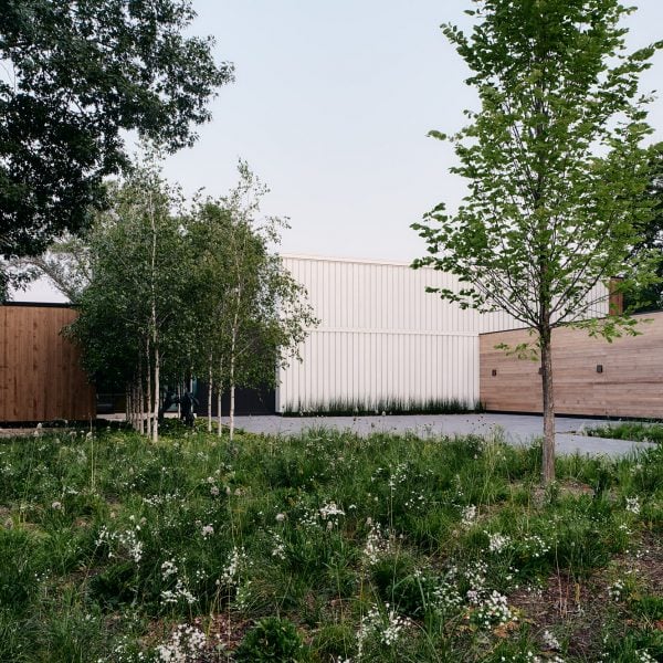 Otras casas en Minnesota incluyen Casa de madera de Salmela Architect Esto está inspirado en la arquitectura japonesa, Vivienda baja por Altus Arquitectura + Diseño Tiene paredes de cristal y cedro y un cobertizo independiente revestido de acero inoxidable con espejos.