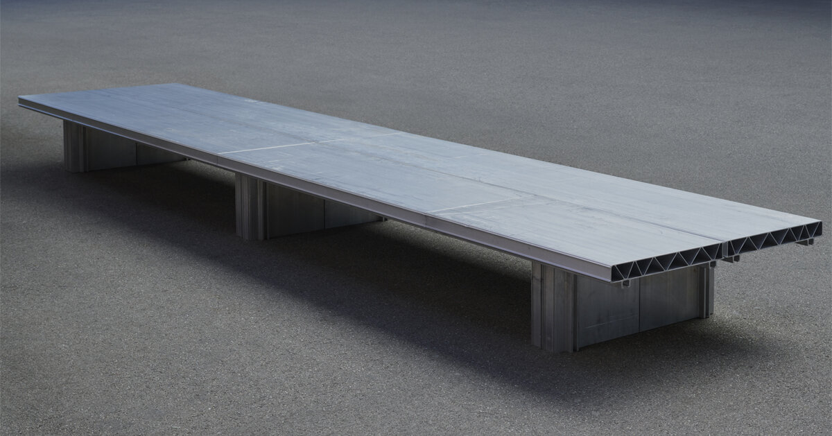 Las mesas de exhibición y los bancos públicos están hechos de grandes paneles estructurales de aluminio tomados de las industrias automotriz y aeroespacial. Su escala y textura originales están diseñadas para múltiples arreglos y funciones, haciendo explícito el material original y enfatizando gestos de reutilización y recontextualización. Las piezas únicas se ensamblan mediante un proceso similar a un collage que remezcla materiales sobrantes y sobrantes del stock de la exposición con nuevos elementos hechos a partir de restos de fabricantes cercanos. En conjunto, estas obras están ubicadas en Servicios de Art Basel Como manifiesto, se insta a explorar soluciones de diseño innovadoras inspiradas en el potencial de la gestión de recursos, particularmente en el contexto de eventos temporales.