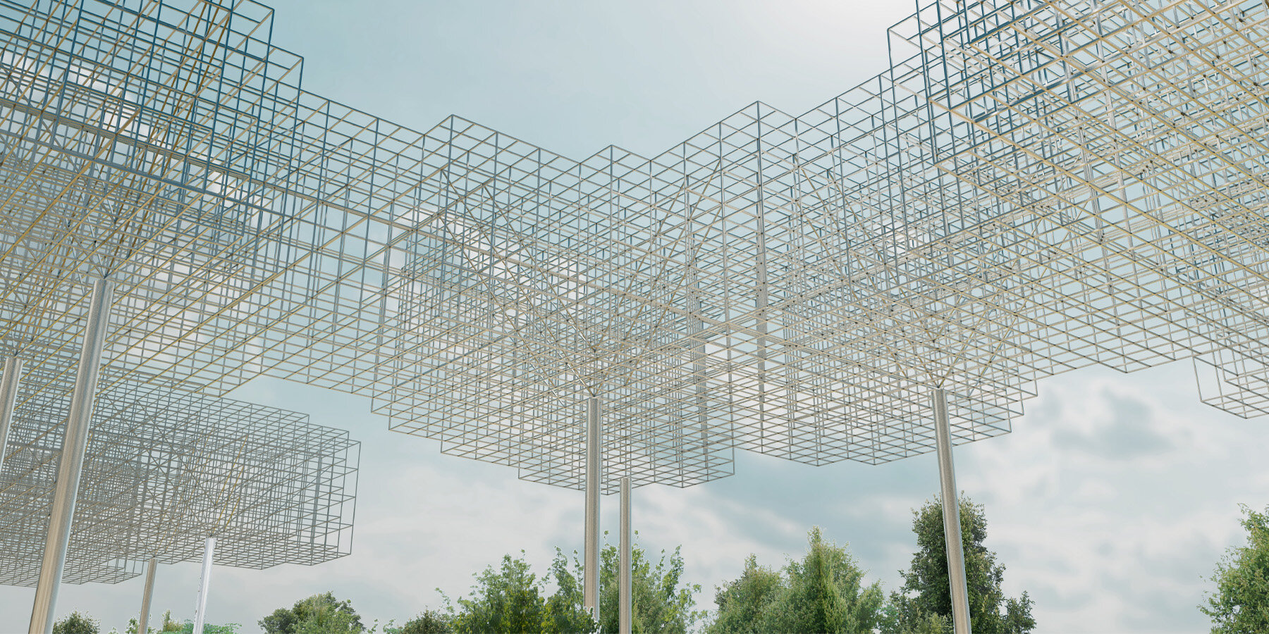 Como reflejo de esta visión, Serenity Forest encarna dos puntos clave: crear mejores formas de compartir recursos, en lugar de competir por ellos, y conectar, en lugar de dividir fronteras. El bosque se convierte así en un símbolo de una sociedad futura donde los humanos comparten y cocrean datos. La materia orgánica se crea a partir de la luz y el agua y se distribuye por todo el mundo. En esta comunidad ecosistémica surge la «mejor convivencia» como un pabellón sin techo ni paredes. SANAA-Diseñado La estructura aparece como un grupo abstracto de árboles o una red de materiales integrados en el bosque existente, simbolizando la unión de los recursos naturales y artificiales. ‘Esperamos que este pabellón abierto se convierta en una continuación del «Bosque Tranquilo» y en un lugar donde puedan reunirse personas de diferentes ámbitos de la vida. Saná concluyó.