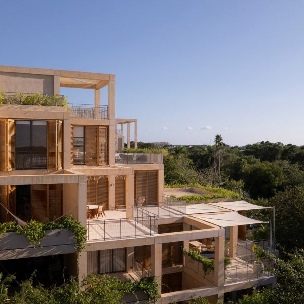 estudio de arquitectura local Sordo Maddaleno Creó una zona residencial. México mayas informados pirámide Hecho de apartamentos cúbicos apilados.