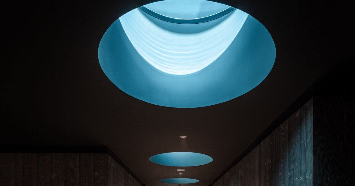 El pasillo del Hay Boutique Hotel cuenta con ventanas en forma de ojo de buey que dan a la piscina de acero.