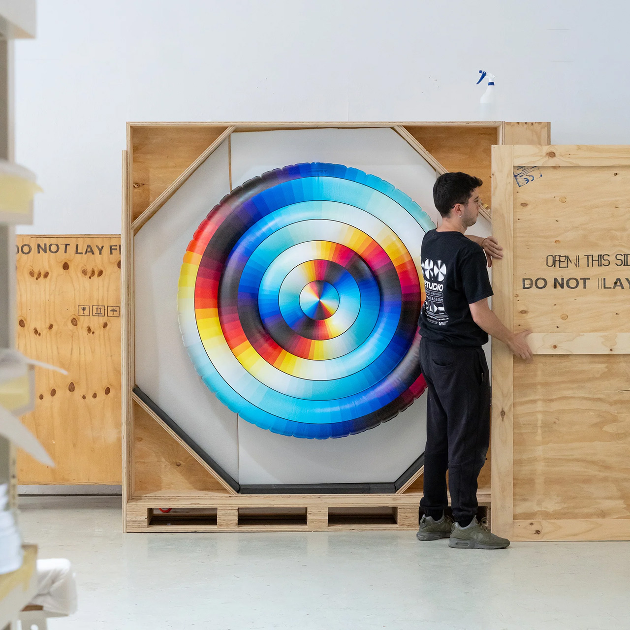 Hace apenas unos años cubrimos al artista argentino-español Felipe Pantone usar una piscina como lienzo, aplicando su obra de arte en color única a la base, una pieza a la vez, para lograr un efecto deslumbrante. Ahora, ha tomado esa misma estética colorida del molinete y la reinterpretó en una tumbona inflable para piscina de edición limitada que seguramente causará revuelo entre los amantes del color.
