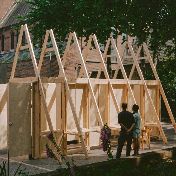 Otros pabellones diseñados para el Festival de Arquitectura de Londres de este año incluyen Foster + Partners y NEON crean un pabellón colorido hecho con materiales de construcción «cotidianos» y Obras Desconocidas Pabellón en forma de media luna construido con arcos escalonados de madera.