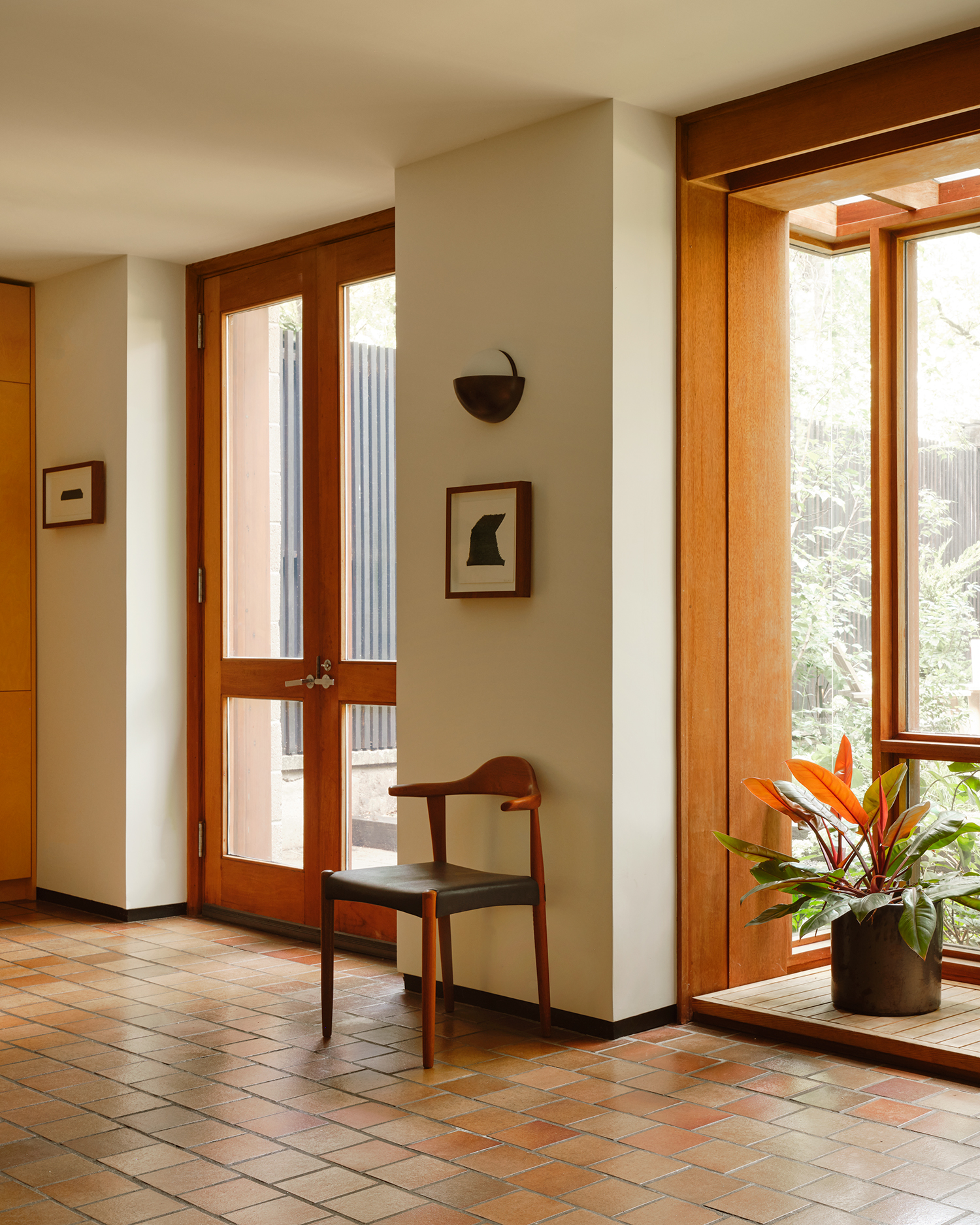 El piso superior es la suite principal con sala de recepción, oficina, sala de estar, vestidor y baño principal. La arquitectura original de la casa se inspiró en la Casa Esherick de Louis Kahn, incluido un exterior de bloques de concreto y marcos de ventanas de secoya. El interior cuenta con una hermosa carpintería de abedul aserrada rotatoriamente y suelos de baldosas de cantera de Ruabon. Con el tiempo, el diseño se dividió en apartamentos separados y estudios de arquitectura. Starling Architecture llevó a cabo una renovación completa de ocho meses, reconfigurando los planos para satisfacer las necesidades de la familia Willow Place mientras se inspiraba en el diseño original de Merz. El rediseño incluyó una extensa carpintería y nuevos muebles personalizados. La extensa colección de muebles y arte de la familia, junto con el asesoramiento de Hovey Design sobre iluminación, tapicería, revestimientos de paredes y otros muebles, aseguraron que el encanto de la casa de mediados de siglo se complementara y realzara.