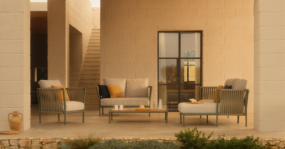uno masLa marca líder en diseño de mobiliario de exterior relanza la gama Treble con opciones de color actualizadas. Fabricada en aluminio y cuerda sintética tejida a mano, la colección de exterior es conocida por su ligereza, líneas limpias y detalles compactos. este sillón, sofá de dos plazas, salón y mesa de centro Disponible en cuatro nuevos acabados de montura (Grafito, Salvia, Shiraz y Arena) combinados con tres opciones de tejido de cuerda: Blanco Melange, Marsala y Verde Melange, que se pueden combinar para crear un contraste sutil y elegante.