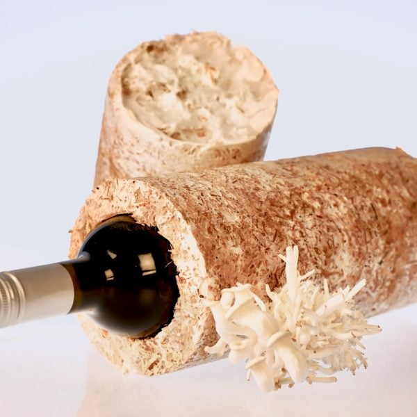 La exposición también incluye un proyecto llamado Myco-G, que propone envases elaborados a partir de micelio para brindar una alternativa a los envases dañinos para el medio ambiente, diseñado por Eugenia María Rossi Rossi lo diseñó mientras estudiaba diseño de producto. universidad del banco sur de londres.
