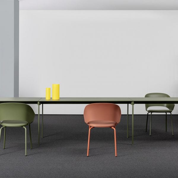 Marla dice que la silla es ideal para oficinas, contract y ambientes al aire libre, mientras que la versión con respaldo alto con asiento y respaldo acolchados es particularmente adecuada para su uso en el lugar de trabajo.