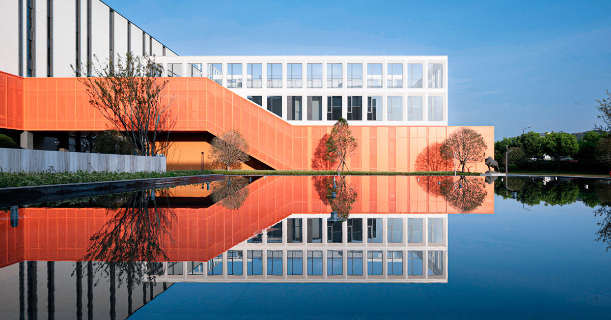 Pasillos exteriores rodean el edificio de oficinas de GLA Design en China