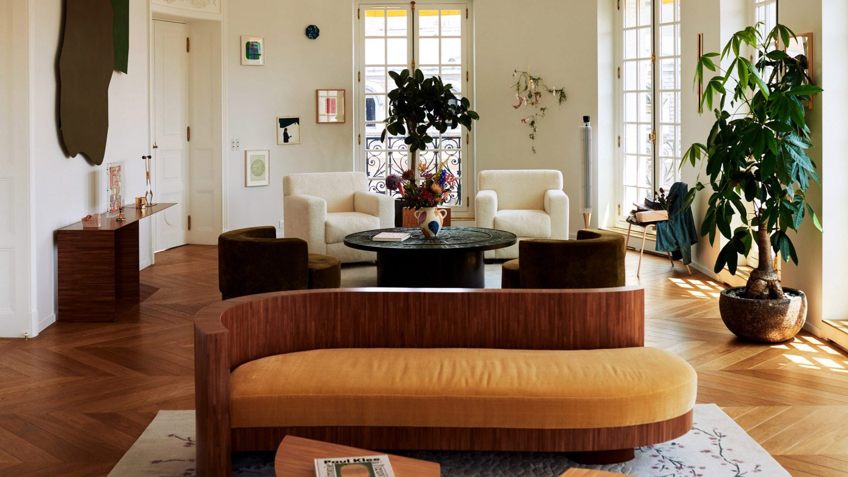 El interior de este apartamento parisino en un edificio Haussmann (arriba y foto principal) fue diseñado por Design Studio Howett y Madani Cree una sensación de galería inspirada en la colección de arte del propietario.