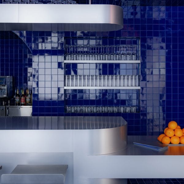 Acabado azul cobalto bar y restaurantes en manhattan La parte baja al esteEl estudio Omar Aqeel, con sede en Brooklyn, lo diseñó como un «oasis retrofuturista».