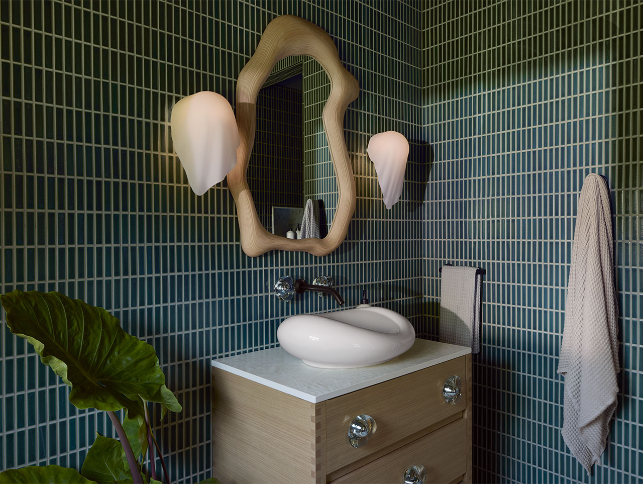 La colección Landshapes de Arsham para Kohler, exhibida en Arsham Cabin, se inspira en la naturaleza, con diseños que incorporan elementos característicos de él, como gotas de agua y formas cinceladas. La colección incluye una bañera independiente tallada a mano y un tocador único, los cuales rinden homenaje al viaje de Arsham a Japón y a la chinoiserie japonesa. Las piezas adicionales de Landshapes son fregaderos de buques. Inspirado en la creación del fregadero Rock.01 de Arsham y en las manijas de los grifos de vidrio que hacen referencia a las gotas de agua. También está el Veiled Smart Toilet de Kohler, que está diseñado para imitar la erosión natural, un estilo por el que es conocido, así como espejos y accesorios de iluminación con formas orgánicas. La gama Landshapes estará disponible a finales de este año.