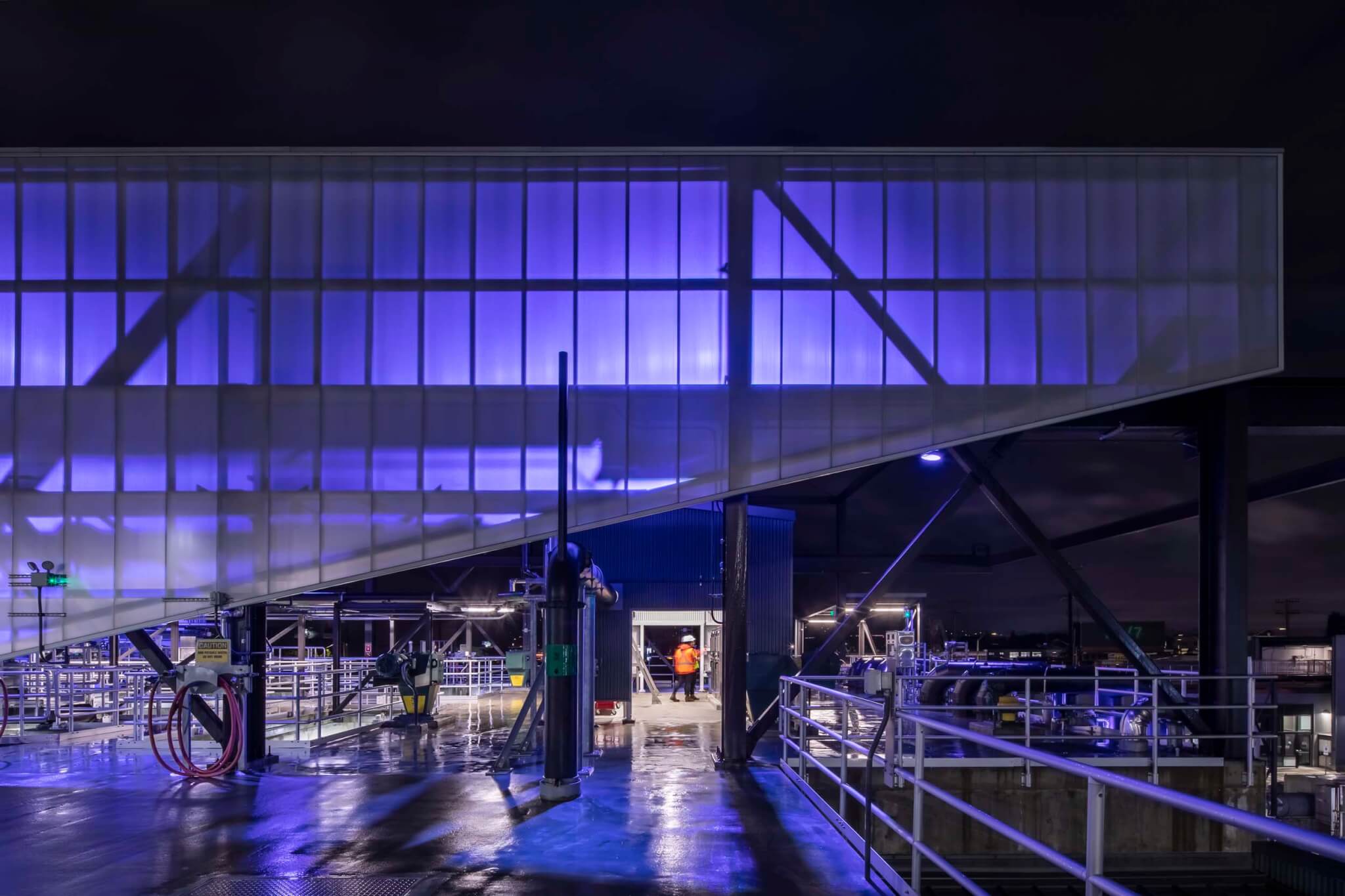 Como práctica, estamos arraigados en la comunidad de Georgetown en Seattle. Estudio Equinoccio, un colectivo de más de 150 artistas y artesanos. A menos de dos cuadras de distancia, el condado local planea una estación de tratamiento de clima húmedo que purificará el escurrimiento sucio y organizaciones de la sociedad civil (desbordamientos combinados de alcantarillado) a menudo desembocan en el cercano río Duwamish durante las lluvias y tormentas. Trabajé en este proyecto mientras trabajaba en la empresa. Socios del casco de Millercuando fundé Signal, mi papel en el proyecto siguió siendo el mismo y completamos Estación de tratamiento de clima húmedo de Georgetown 2023. Al mismo tiempo, Signal habla el idioma del lugar y encuentra formas de entrelazar el arte, la narración y el significado en tipologías que a menudo están ocultas a la vista del público. Esta asociación nos permitió diseñar una instalación ambientalmente sensible y receptiva con una huella pequeña pero fuertes conexiones con la comunidad. Cuando esté en uso, los transeúntes verán brillar la instalación, con un halo de 7 pies de largo que indica que el agua está fluyendo hacia adentro, mientras que una luz azul brillante sigue el proceso de purificación del agua a través de la instalación. Este no es de ninguna manera un vecino oculto y ofensivo: es una máquina ecológica que visiblemente agrega interés y arte al vecindario al tiempo que marca la entrada a Georgetown. Juntos mejoramos sus habilidades como marcador de posición y al mismo tiempo mejoramos las habilidades de Miller Hull como sintetizador de fondo.
